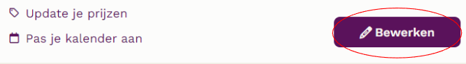 Klik op 'bewerken' bij het natuurhuisje waarbij je een vuurwerkvrij verblijf wilt aanbieden.