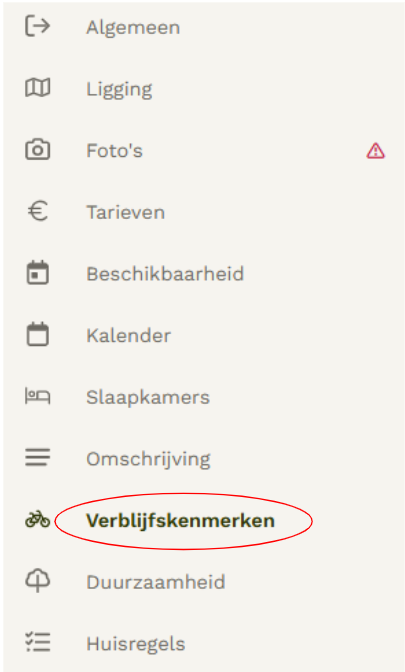 Kies vervolgens links in het menu voor 'Verblijfskenmerken'.