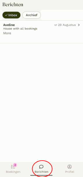 Wanneer je ingelogd bent op je account, ga je onderin naar 'Berichten'. Je ziet hier een overzicht van alle berichten.